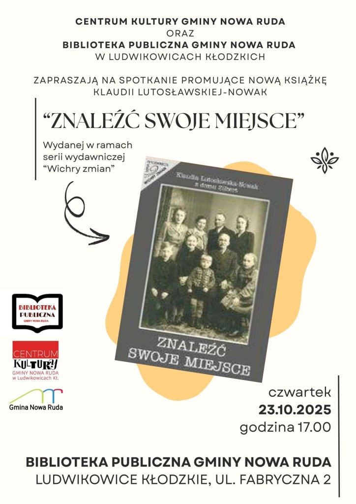 23 października 2025 r., godz. 17.00, Ludwikowice Kłodzkie, Biblioteka Publiczna Gminy Nowa Ruda