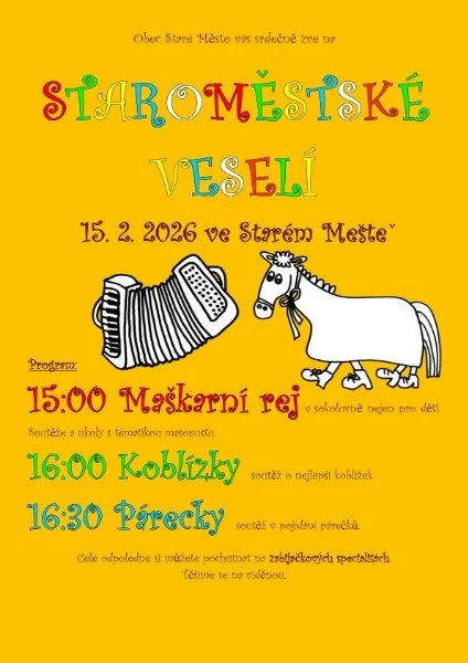 Przez całe popołudnie będą mogli Państwo delektować się specjałami z rzeźni, maski mile widziane. Czeka Państwa również bal maskowy nie tylko dla dzieci, konkursy, zadania karnawałowe i ocena masek, konkurs na najlepsze pączki oraz konkurs dla wszystkich smakoszy. Imprezę odwiedzi również Maxifood Jarda Němec.