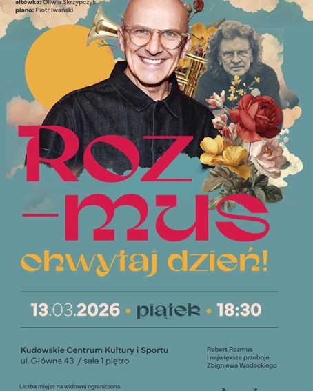 13 marca br. w Kudowie-Zdroju odbędzie się koncert „Roz-mus – chwytaj dzień!”. Wydarzenie zaplanowano na godzinę 18:30 w Kudowskim Centrum Kultury i Sportu przy ul. Głównej 43 (sala na pierwszym piętrze).