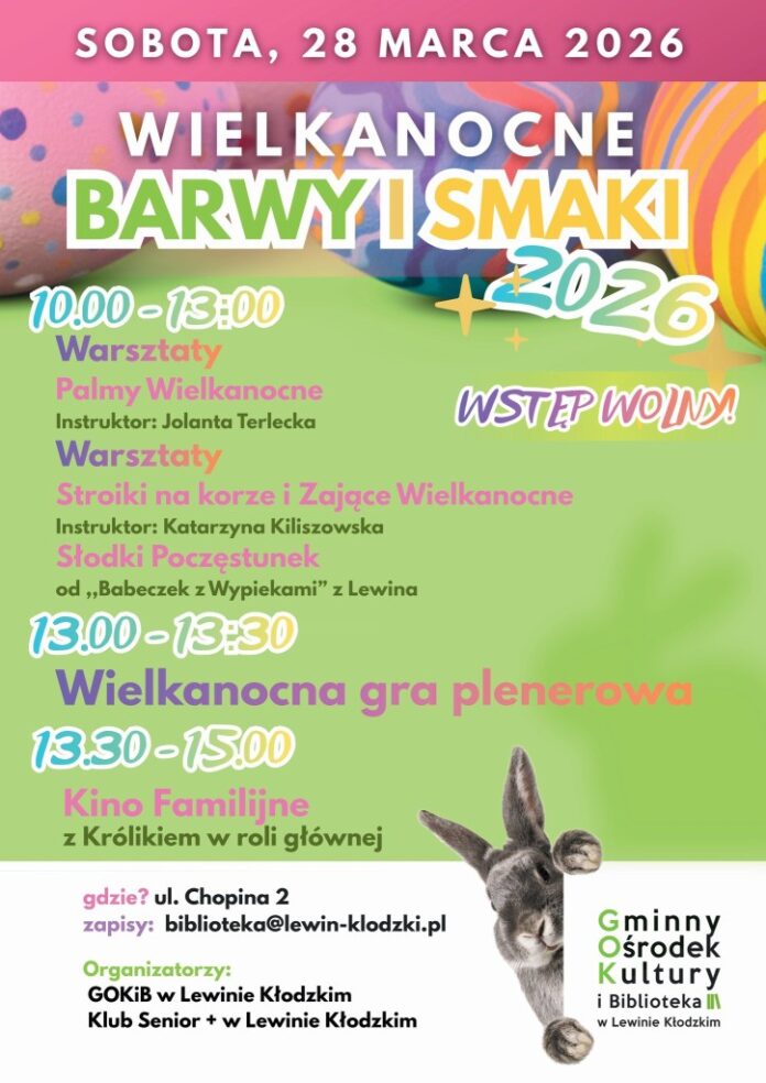28 marca 2026 r., od godz. 13.00, Lewin Kłodzki, Gminny Ośrodek Kultury i Biblioteka
