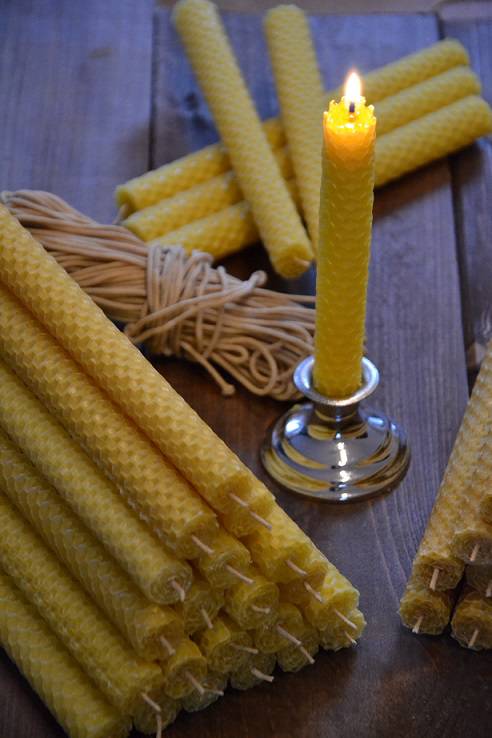 Świece z naturalnego wosku pszczelego i z naturalnym bawełnianym knotem są jednym z produktów pszczelich, wytwarzanych w gospodarstwie pasiecznym pp. Kopaczów. Wszystkie są ręcznie robione, grawerowane bądź odlewane, z ornamentami pszczelimi, mają formę rustykalną – oblewaną bądź zawijane – charakteryzujące się komórkami pszczelimi. Jest to w całości produkt naturalny, związany z miejscem ich wytwarzania, o naturalnym kolorze i zapachu. Świece z wosku pszczelego to także samo zdrowie; spalający się wosk wytwarza jony ujemne, które oczyszczają powietrze z pyłów, nieprzyjemnych zapachów, toksyn, wirusów in. szkodliwych substancji.