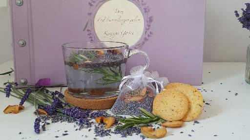 Herbata lawendowa działa uspokajająco, odprężająco i relaksująco. W jej skład wchodzi lawenda suszona lub żywa 95%, jabłka suszone na słońcu 2%, rozmaryn suszony lub żywy 2%, cynamon 0,5%, kardamon 0,5%. Pięknie pachnie, co sprawia że czujemy się wyciszeni, a wypita przed snem pozwala spokojnie wypocząć. Pysznie smakuje z maślanymi ciasteczkami. Wystudzona i posłodzona miodem stanowi doskonałą podstawę do sporządzenia lawendowej lemoniady. Kto raz spróbuje, będzie wracał do tego smacznego nie tylko w smaku ale też w zapachu naparu.