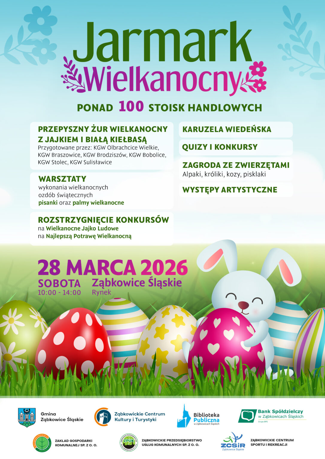 Na trhu se představí více než 100 prodejců, kteří budou nabízet řemeslné výrobky, velikonoční dekorace a řadu regionálních produktů. Jednou z hlavních atrakcí bude tradiční velikonoční żurek (kyselá žitná polévka) s vejci a bílou klobásou, kterou připravují Venkovské ženské spolky z Olbrachcic Wielkie, Braszowic, Brodziszówa, Bobolic, Stolce a Sulisławic. Součástí programu budou i dílny velikonočního zdobení, kde si můžete vyrobit vlastní velikonoční vajíčka a velikonoční palmy. Budou zde také kvízy a soutěže a během akce budou vyhlášeni vítězové soutěží o lidové velikonoční vajíčko a nejlepší velikonoční pokrm. Pro nejmenší návštěvníky bude připraven výběh se zvířaty (včetně alpak, králíků, koz a kuřat) a také vídeňský kolotoč. Součástí akce budou i umělecká vystoupení.