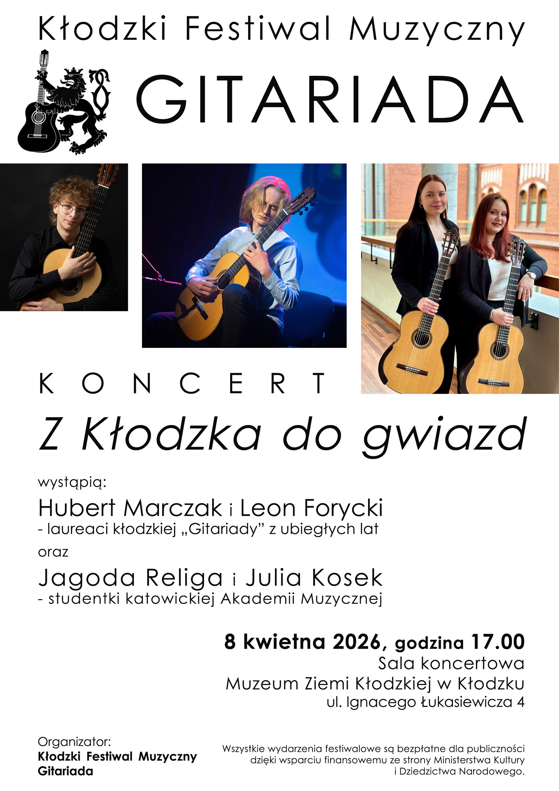 Festivalový koncert „From Kłodzko to the Stars“, na kterém vystoupí předchozí vítězové soutěže „Gitariáda“ Kłodzko – Hubert Marczak, Leon Forycki a současní studenti katovické hudební akademie: Jagoda Religa a Julia Kosek, kteří jako studenti získali řadu ocenění na soutěži v Kladsku.