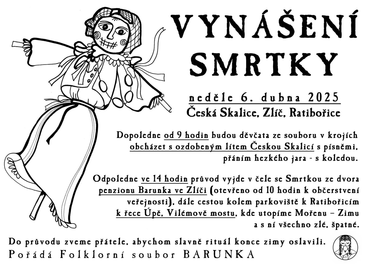 We will drown the Mound - winter and with it everything bad, bad! We will meet at 2:00 pm at the Barunka Guesthouse in Zlíč /poster attached/.